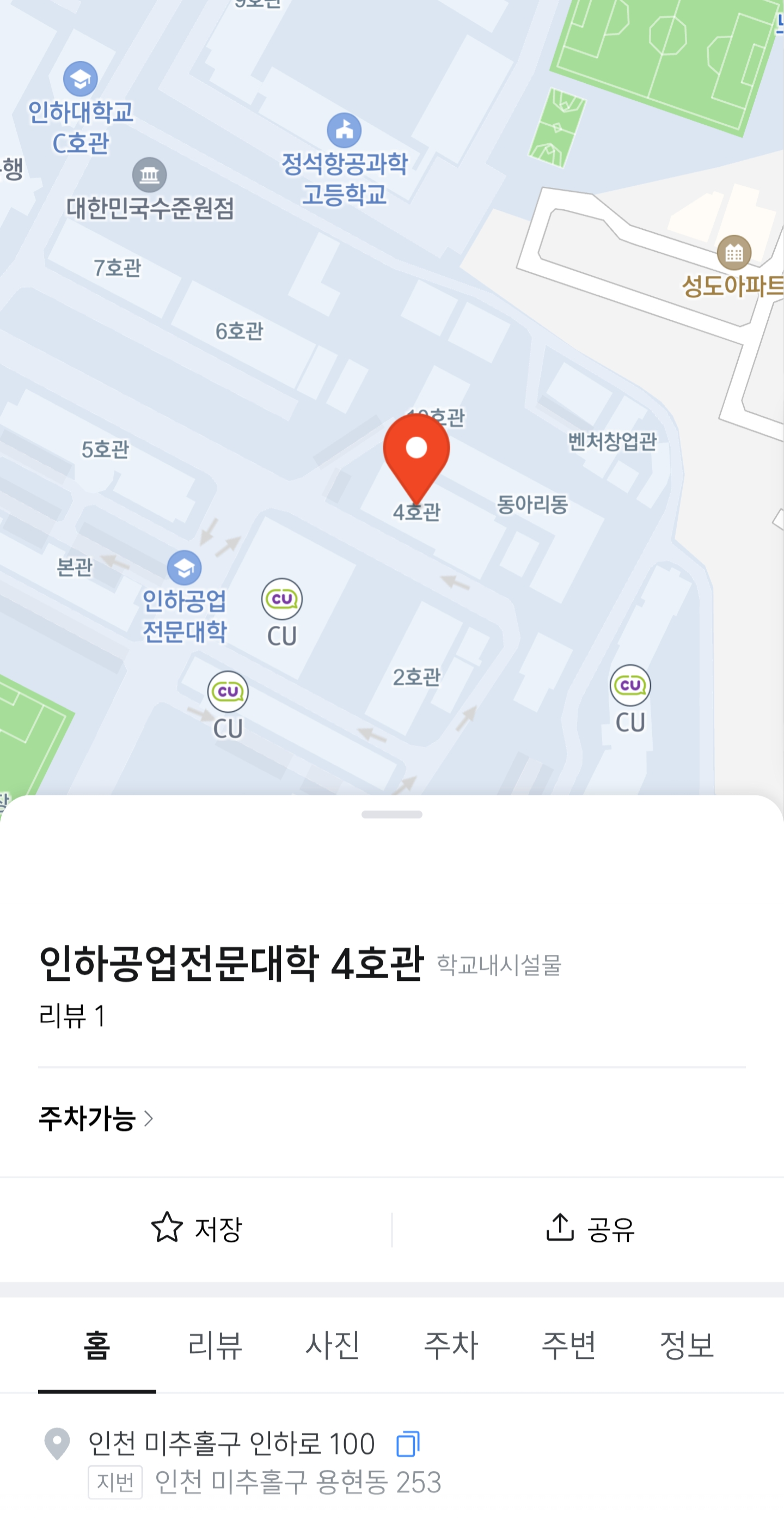 - 네비게이션 검색창에 "인하공업전문대학 4호관(또는 정문)" 검색