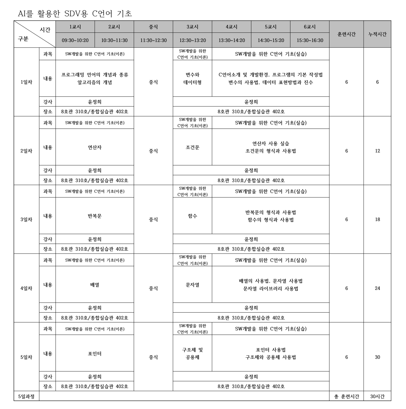 | 출석률 | 80% 이상 출석 | 100% | 지각 및 조퇴 3회 미만, 1일 강의 50% 이상 수강 |