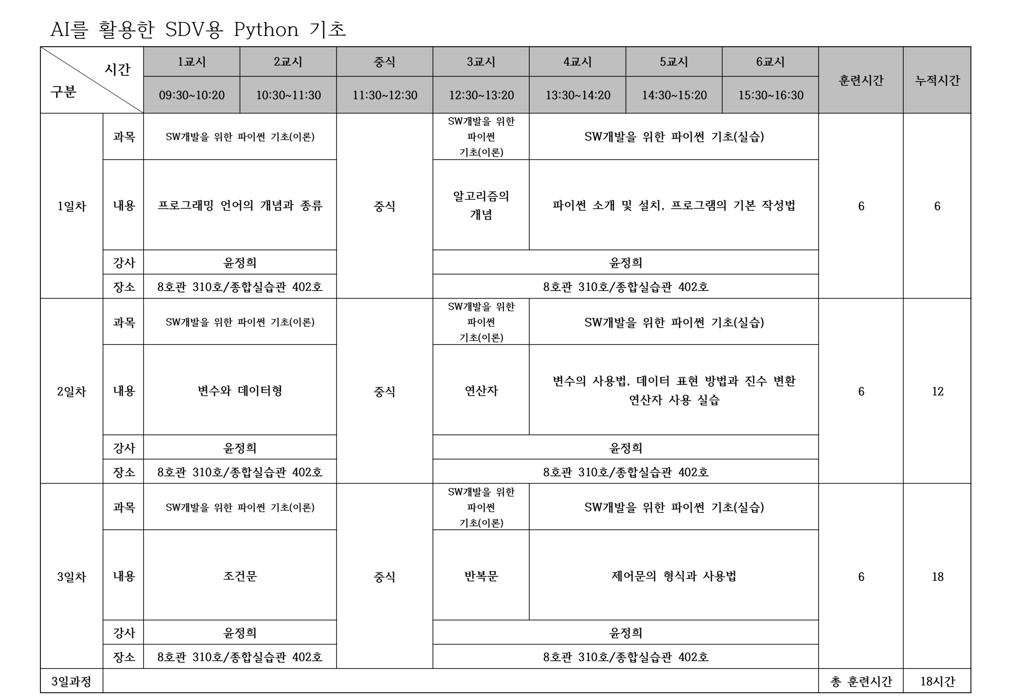 | 출석률 | 80% 이상 출석 | 100% | 지각 및 조퇴 3회 미만, 1일 강의 50% 이상 수강 |